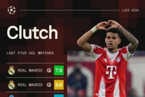 據(jù)Sofascore統(tǒng)計(jì),迪亞斯近5場歐冠比賽皆參與進(jìn)球,5場比賽總計(jì)打進(jìn)3球,助攻3次。