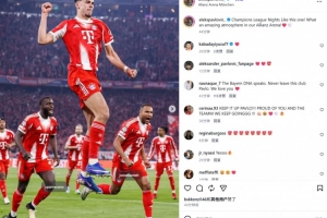 他也在賽后通過(guò)社媒曬出自己的慶祝照,并配文:“像這般的歐冠之夜,我們安聯(lián)球場(chǎng)的氛圍太令人難以置信了!”