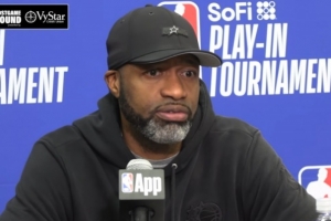 莫斯利:“是的,他們?cè)谧柚顾M(jìn)入禁區(qū)方面做得非常好。當(dāng)他持球時(shí),他們會(huì)蜂擁而上。我認(rèn)為我們必須繼續(xù)做好在他突破時(shí)為他創(chuàng)造空間的工作,并且在他遭遇包夾后能將球分出來。但是,你必須給予76人隊(duì)充分的肯定,他們收縮防線、保護(hù)禁區(qū)做得很好。然而,我們的小伙子們依然在戰(zhàn)斗,他們的精神狀態(tài)很積極,他們清楚我們需要回到主場,在周五的比賽中捍衛(wèi)我們的主場。”