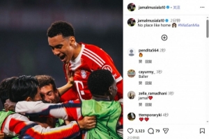 拜仁中場穆西亞拉在社交媒體曬出與隊(duì)友一起慶祝的照片,分享了晉級(jí)的喜悅,并配文寫道:“沒有比主場更好的地方了?!?/p>