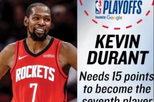 今天,NBA官方預(yù)警,杜蘭特目前季后賽總得分為4985分,他距離成為季后賽歷史第七位5000分先生還差15分。