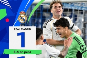 此役上半場(chǎng)以利亞·李為巴黎圣日耳曼U19先拔頭籌,下半場(chǎng)第83分鐘利貝托·納瓦斯克斯扳平比分,兩隊(duì)最終戰(zhàn)成1-1平局,進(jìn)入點(diǎn)球大戰(zhàn),最終皇馬U19在點(diǎn)球大戰(zhàn)中5-4取勝,晉級(jí)決賽。