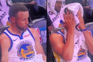 美國自媒體purpgold配圖寫道:“庫里知道他的籃球生涯正在凋零,38歲時錯失季后賽。”