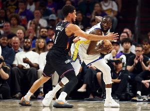 本場比賽:德文·布克全場出戰(zhàn)42分鐘,12投5中,三分4投0中,罰球10罰10中,得到20分6籃板8助攻1搶斷1失誤。德雷蒙德·格林全場出戰(zhàn)35分鐘,4投2中,三分2投0中,罰球2罰1中,得到5分2籃板6助攻1搶斷5失誤。