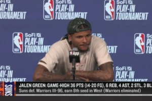 體育資訊4月18日訊 NBA附加賽,太陽111-96擊敗勇士,賽后杰倫·格林接受了媒體采訪,以下為完整采訪。