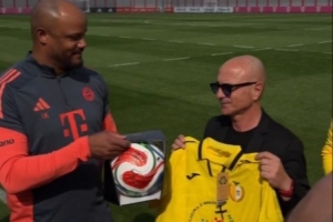 全部由業(yè)余球員組成的梵蒂岡隊(duì)在今日造訪(fǎng)了拜仁訓(xùn)練基地,孔帕尼和諾伊爾作為代表和梵蒂岡隊(duì)進(jìn)行了會(huì)面。