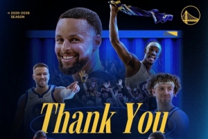 勇士官方今日更推向球迷致謝寫道:#勇士國度,你們真的是全世界最好的球迷,感謝你們一整個賽季以來的支持。