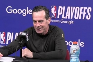 體育資訊4月19日訊 NBA季后賽首輪G1,騎士主場126-113戰(zhàn)勝猛龍,總比分1-0,賽后阿特金森接受采訪。