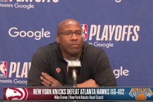 體育資訊4月19日訊 NBA季后賽東部首輪G1,尼克斯113-102戰(zhàn)勝老鷹。賽后,尼克斯主帥邁克·布朗接受媒體采訪,以下為采訪全文。