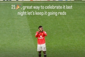 梅努在個(gè)人社媒曬出自己在球場的照片,配文寫道:“昨晚以一種很棒的方式慶祝自己21歲生日,讓我們保持這樣的勢頭!”