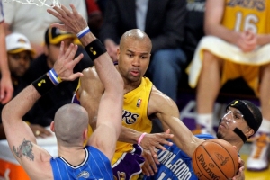 帕金斯說:“有這么一個(gè)家伙,雖然我個(gè)人私下里跟他合不來,但我必須以一個(gè)球員的身份向他致敬……當(dāng)你談?wù)撃欠N能隨時(shí)開啟和關(guān)閉模式的能力,談?wù)?2場常規(guī)賽球員和16場季后賽球員的區(qū)別時(shí)。那個(gè)人絕對是德里克·費(fèi)舍爾。德里克·費(fèi)舍爾在他職業(yè)生涯的大部分時(shí)間里,看起來就像是全聯(lián)盟最差的首發(fā)控球后衛(wèi)之一。但當(dāng)需要他挺身而出,在科比和奧尼爾身邊,或者在科比和加索爾身邊打季后賽時(shí),那家伙絕對會(huì)站出來。他瞬間就完成了蛻變。”