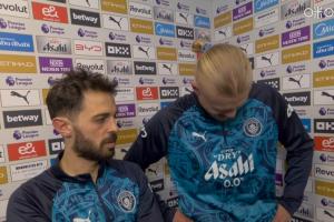 體育資訊04月20日訊 英超第33輪,曼城2-1戰(zhàn)勝阿森納,賽后曼城進(jìn)球功臣哈蘭德和即將離隊(duì)的B席一起接受了天空體育的采訪。