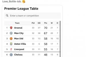 摩根:“所以,阿森納依舊穩(wěn)居榜首,依然將贏得聯(lián)賽冠軍。曼城還是第二,曼聯(lián)依然無關(guān)緊要;利物浦還是實(shí)力只剩去年一半;切爾西依舊一無是處;熱刺依然遲早降級(jí)。