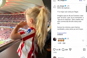 國(guó)王杯決賽,馬競(jìng)點(diǎn)球大戰(zhàn)不敵皇家社會(huì),無緣冠軍。埃里卡·喬佩雷納社媒曬出帶著孩子觀賽的照片,配文:“很難解釋……而最美好的尚未到來。