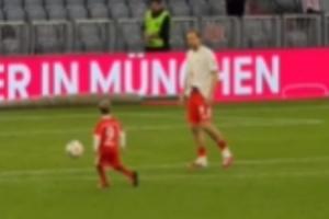 人生的幸福時(shí)刻??拜仁提前四輪鎖定德甲冠軍后,凱恩和兒子一起在球場(chǎng)踢球??