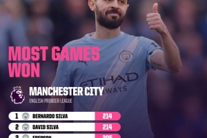 體育資訊4月20日訊 英超第33輪比賽,曼城在伊蒂哈德球場以2-1的比分力克領頭羊阿森納。本場比賽之后,貝爾納多·席爾瓦為曼城征戰(zhàn)英超的勝場數(shù)達到214場,追平了另外一位球隊傳遞大衛(wèi)·席爾瓦,并列隊史榜首。