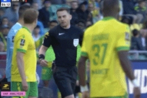 在上周末的第30輪法甲聯(lián)賽,南特主場1-1戰(zhàn)平布雷斯特。比賽第60分鐘,布雷斯特長傳發(fā)起進(jìn)攻,南特球員塔比布在禁區(qū)外對布雷斯特球員盧克·佐格貝犯規(guī)。主裁判紀(jì)堯姆·帕拉迪斯先是向塔比布出示黃牌,但之后VAR介入,主裁判到場邊觀看視頻回放后,改判塔比布紅牌罰下。而南特主帥哈利霍季奇也因?yàn)榭棺h這次改判吃到紅牌。